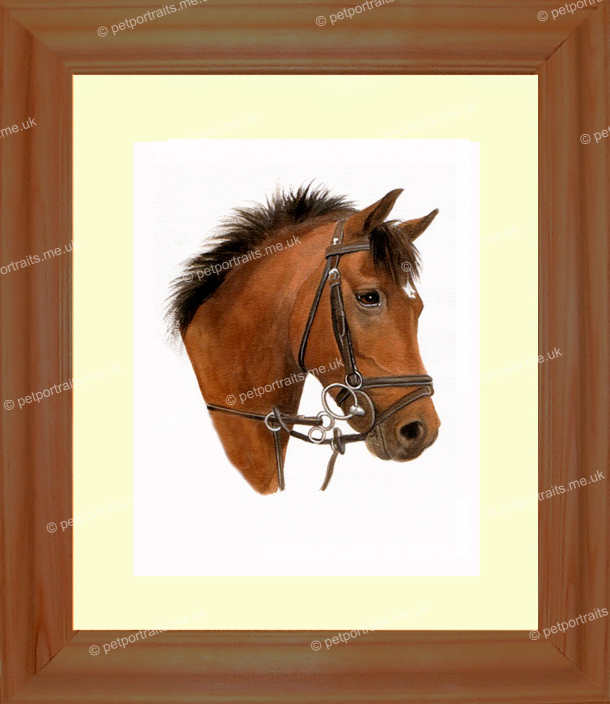 Each portrait is first hand painted in artists quality watercolour paint onto acid free watercolour board. The finished portrait is then mounted and framed. |